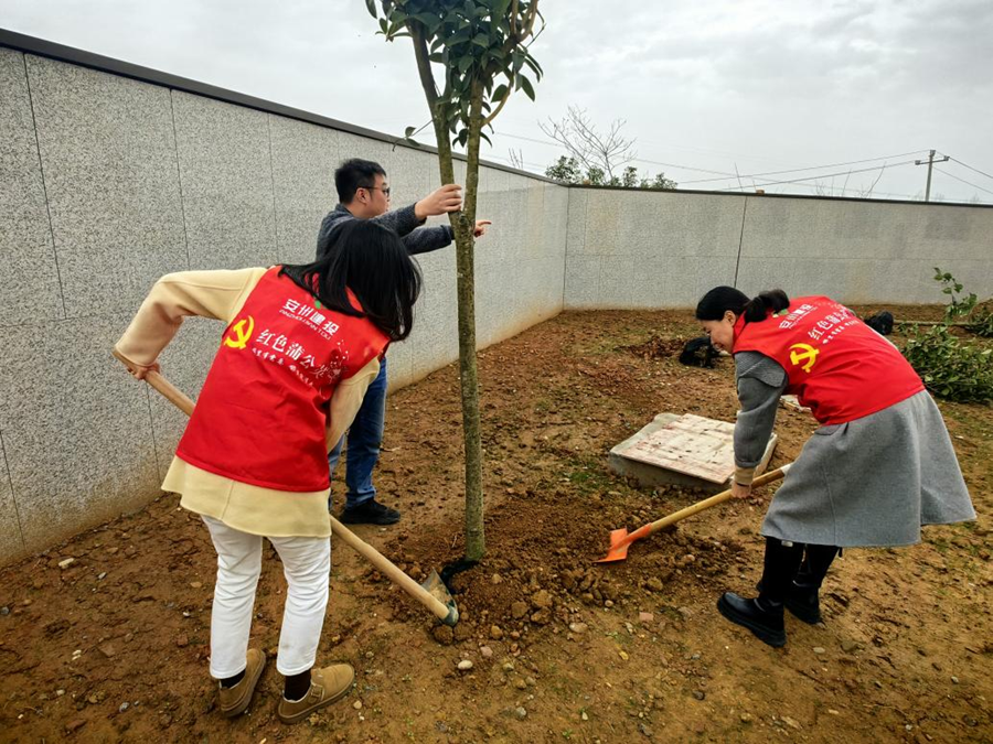植樹活動現(xiàn)場氣氛熱烈,黨員們分組協(xié)作,力求每棵樹苗都扎根牢固。黨員們還為樹苗掛上心愿牌,為活動留下溫情紀念。