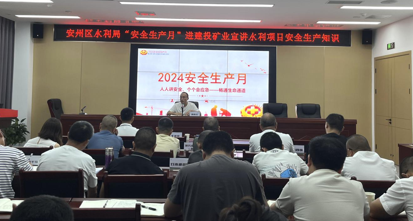 為進(jìn)一步促進(jìn)全員樹(shù)牢安全紅線意識(shí)和底線思維,6月19日,公司召開(kāi)2024年“安全生產(chǎn)月”主題活動(dòng)暨警示教育培訓(xùn)會(huì) 。區(qū)水利局相關(guān)負(fù)責(zé)人、公司中高層管理人員、員工及各項(xiàng)目施工、監(jiān)理單位代表共40余人參加會(huì)議。