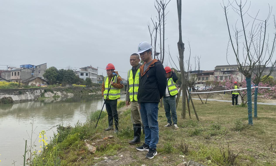 3月29日,公司副總經(jīng)理馮文生帶隊(duì)檢查秀水河秀水鎮(zhèn)場(chǎng)鎮(zhèn)段防洪治理工程推進(jìn)情況。(素材來源:工程項(xiàng)目部 張瑞桃)