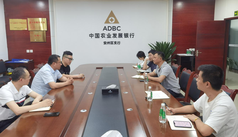 5月20日,公司財(cái)務(wù)總監(jiān)王銘揚(yáng)帶隊(duì)前往中國(guó)農(nóng)業(yè)發(fā)展銀行安州支行洽談融資事宜。(素材來源:財(cái)務(wù)融資部 鄧云超)