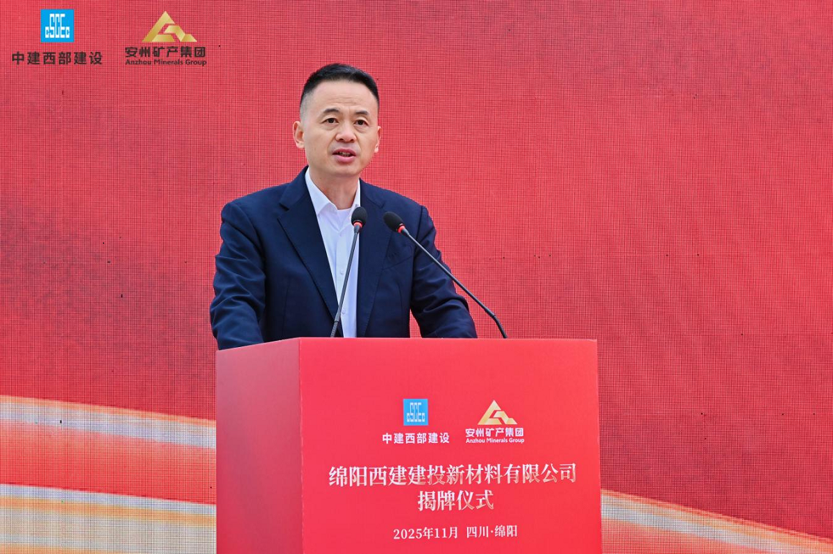 11月18日,綿陽安州礦產(chǎn)資源集團(tuán)有限公司(簡稱“安礦集團(tuán)”)與中建西部建設(shè)集團(tuán)第一有限公司(簡稱“中建西部一公司”)共同出資設(shè)立的綿陽西建建投新材料有限公司(簡稱“西建建投”)在安州正式揭牌。此次揭牌是央地國企強(qiáng)強(qiáng)聯(lián)手、優(yōu)勢互補(bǔ)的合作典范,不僅為綿陽綠色建材產(chǎn)業(yè)發(fā)展與“無廢城市”建設(shè)注入強(qiáng)勁動力,也開啟了雙方共創(chuàng)共贏的嶄新篇章。中建西部一公司黨委書記、董事長徐志飛,安礦集團(tuán)黨支部書記、董事長袁波出席揭牌儀式并致辭。