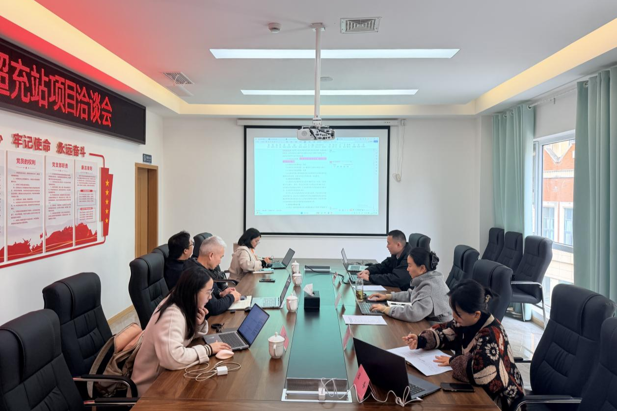 11月19日,集團(tuán)召開智慧物流及重卡超充站項(xiàng)目洽談會(huì),對(duì)合資公司章程、投資協(xié)議等重要內(nèi)容進(jìn)行磋商。兆恒國(guó)際有限公司相關(guān)負(fù)責(zé)人、集團(tuán)黨支部委員、總經(jīng)理?xiàng)铈面眉跋嚓P(guān)負(fù)責(zé)人參加。(素材來源:投資運(yùn)營(yíng)中心 葉瑩)