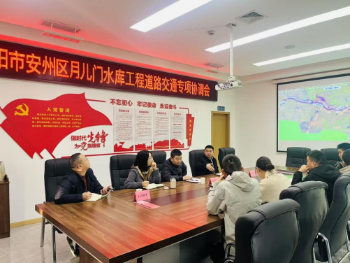 11月27日,集團(tuán)副總經(jīng)理馮文生組織召開安州區(qū)月兒門水庫工程道路交通專項(xiàng)協(xié)調(diào)會。(素材來源:項(xiàng)目安環(huán)中心 張瑞桃)